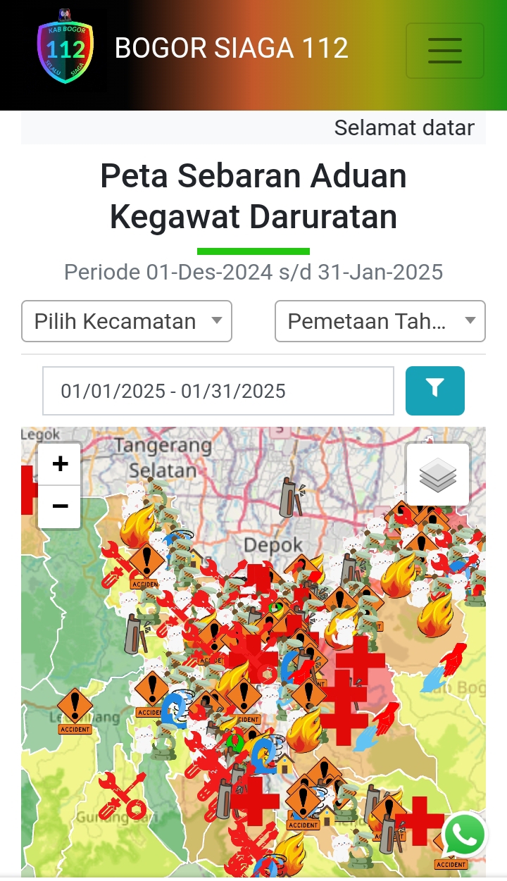Tambahan informasi, bagi masyarakat yang menemukan gangguan khususnya pada sarana dan prasarana pelayanan publik, dapat menghubungi situs Bogor Siaga Kabupaten Bogor 112 dengan mengakses di https://siaga112.bogorkab.go.id, telp WhatsApp di 112, CHATT di nomor 0877-7700-1112.