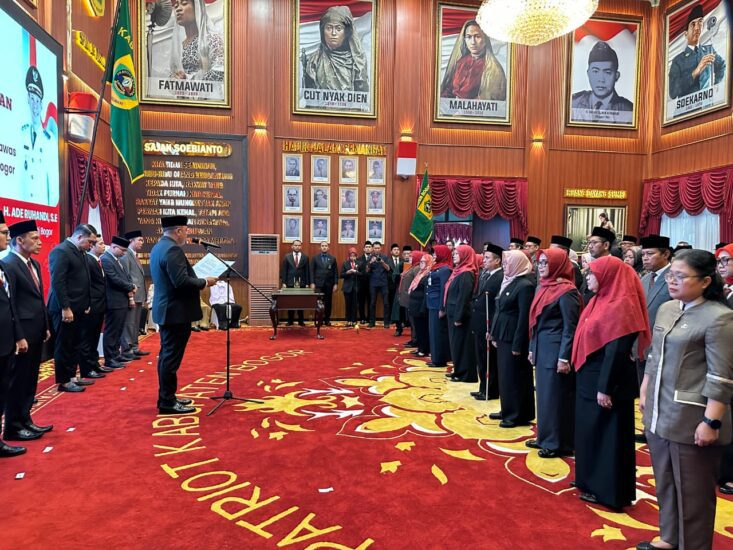 DetakNasional – Bupati Bogor, Rudy Susmanto, kembali melantik dan merotasi 53 pejabat eselon III dan IV di Lingkungan Pemerintah Kabupaten Bogor, yang berlangsung di Pendopo Bupati Bogor, pada Kamis (26/6/25). Ini merupakan langkah strategis untuk mempercepat kinerja birokrasi dan memastikan program-program prioritas berjalan optimal.